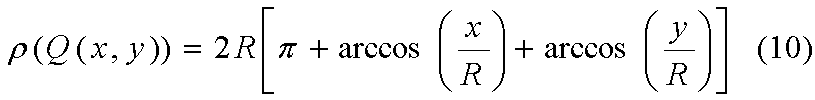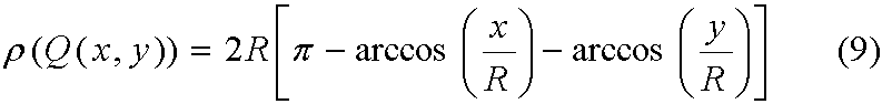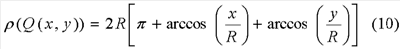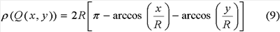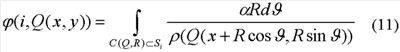 Во всех уравнениях 8-10 фактическая (1,Q(x,y)) вычисляется исходя из того, что освещенная концевая точка А волокна f={A,B} находится в позиции A=Q(x,y), только если В находится на части(ях) окружности C(Q,R) с центром в Q(x,y) с диаметром R и содержащейся в S1.