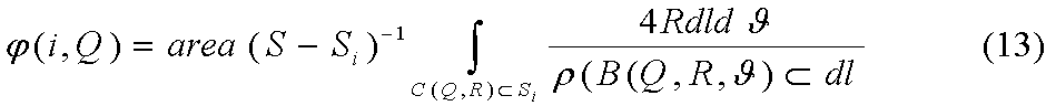 Во-первых, для данной точки A S определяют функцию (A), которая выражает длину части периметра (дуги) круга с центром в А и радиусом R, который целиком заключен в объекте S аутентификации. В объекте аутентификации имеется четыре разных зоны (обозначенные P1-P4 на фиг.6), где (A) однородно вычисляется.