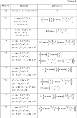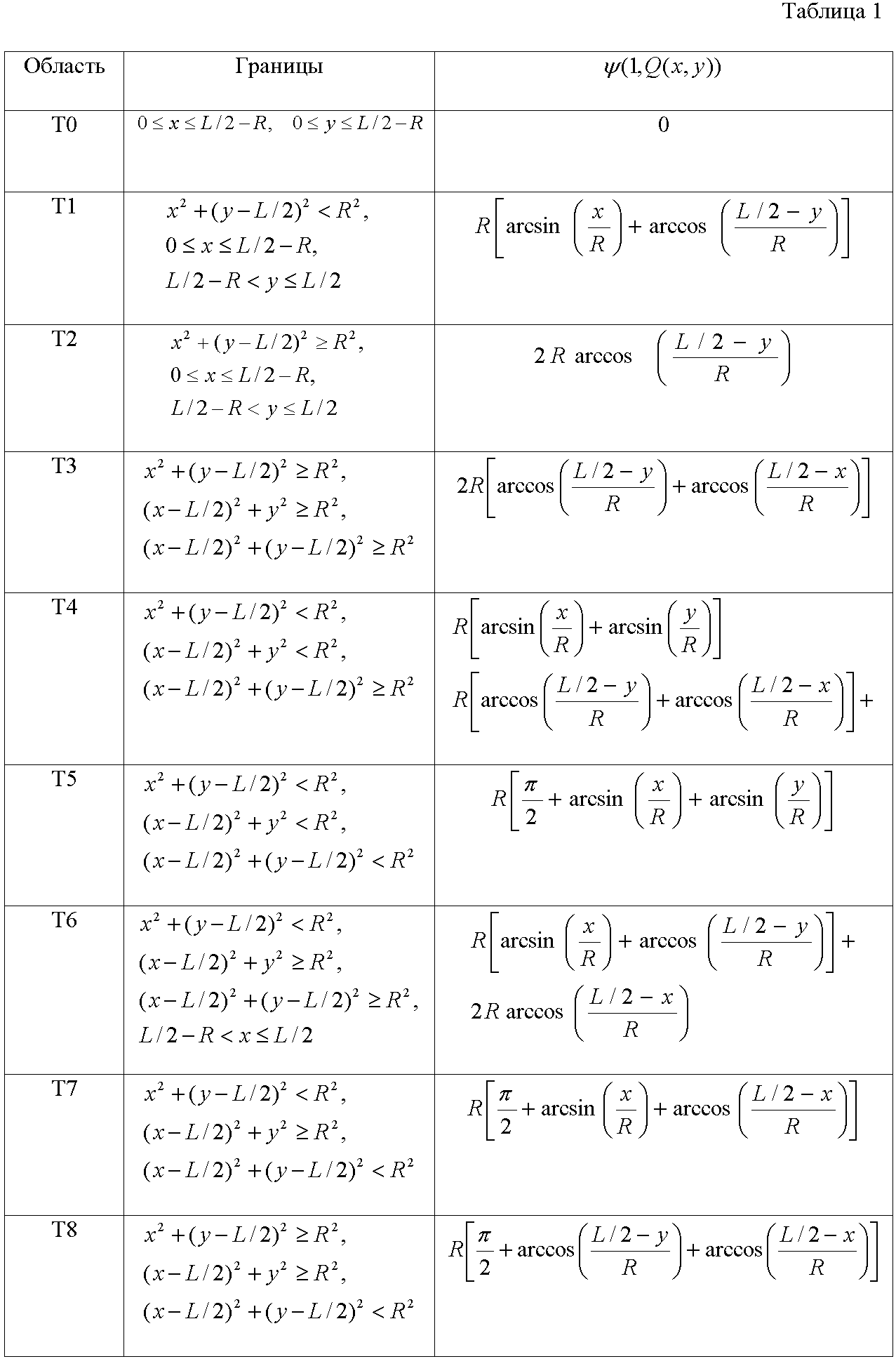 Имеется четыре разных зоны Р3, где окружность радиуса R с центром в любой точке Q P4 по одному разу пересекается с двумя краями СП. Рассмотрим только следующий случай: x2 +y2 < R2.