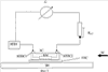 Положительным результатом детектирования защитного средства для варианта электрической схемы на фиг.5 является увеличение электрического тока в электрической цепи при воздействии на защитное средство магнитного поля, направленного вдоль него (см. фиг.5). Увеличение величины электрического тока регистрируется гальванометром G. С этой целью при нулевом внешнем магнитном поле с помощью Rуст выставляется «нулевое» показание G. При наличии внешнего магнитного поля сопротивление RM уменьшается (см. фиг.2-4), что приводит к уменьшению общего сопротивления в электрической цепи и, соответственно, к увеличению в ней величины постоянного тока.