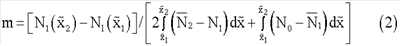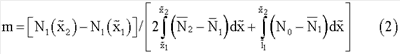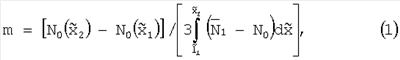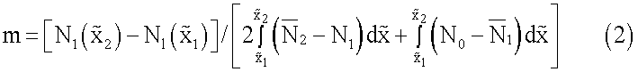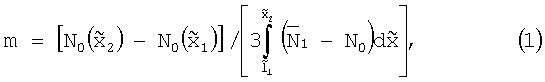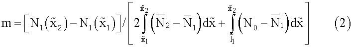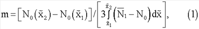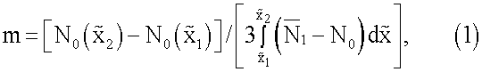 m – относительный коэффициент межканального массообмена; N0 – относительная концентрация трассера в исходном канале пучка стержней; и – средние относительные концентрации трассера соответственно в каналах первого и второго рядов пучка стержней; и – относительные расстояния от сечения впуска трассера в канал пучка стержней соответственно до входного и выходного поперечных сечений характерного участка пучка.