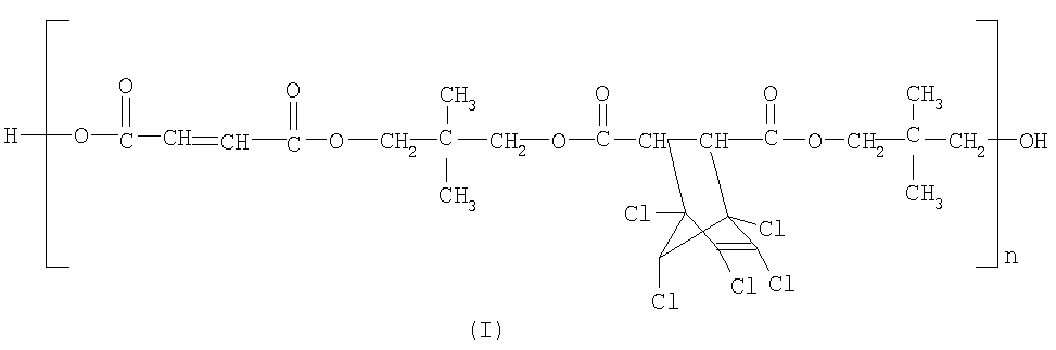 Полиэфирная смола, как определено выше, доступна, например, в Ashland Chemical в двух различных формах: готовая к употреблению жидкая форма, обозначаемая HETRON® 197, и форма, в которой полиэфир формулы (I) предварительно разбавлен реакционно-способным растворителем, в данном случае стиролом; и в порошкообразной форме, обозначаемой HETRON® 197G, которую необходимо растворять в реакционно-способном растворителе перед применением.