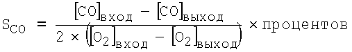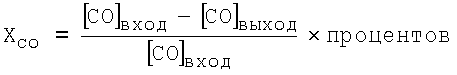 Активность окисления СО может быть выражена как процентное преобразование СО (Хсо) и рассчитывается следующим образом: