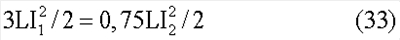 Решениями этого уравнения являются следующие равновесные соотношения максимальных значений тока I2 и потокосцепления 2 на втором этапе по сравнению с первым согласно новому коэффициенту пропорциональности (0,75L):