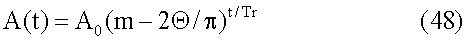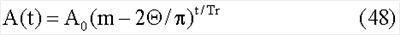При увеличении величины R неравенство (45) превращается в равенство, тем самым устанавливается пороговое значение активного сопротивления контура, при котором возможно нарастание амплитуд напряжения и тока. С учетом выражений (44), (45), (46) зависимость амплитуд результирующих колебаний от времени t может быть выражена следующей формулой