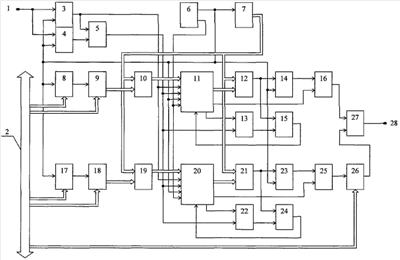 Такое же число разрядов N должны иметь регистры 9, 18, сумматоры 10, 19 и компараторы 12, 21. ОЗУ 11, 20 должны иметь на один разряд больше (N+1).