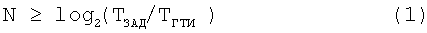 Счетчик времени 7 формирует код текущего времени с ценой младшего разряда, равной периоду тактовых импульсов ТГТИ. Полное время пересчета счетчика времени 7 должно быть не менее максимального времени задержки ТЗАД, то есть число разрядов N счетчика времени 7 должно определяться следующей формулой: