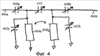 На Фиг.4 показана принципиальная схема иллюстративного варианта осуществления перестраиваемого фильтра. Перестраиваемый фильтр можно использовать для режекции внеполосных сигналов, вырабатываемых малошумящим усилителем 212 на приемнике 208 и УРУ 218 на передатчике 206 (см. Фиг.2). Пару перестраиваемых фильтров также можно использовать в дуплексере 210, один фильтр – между антенной 202 и приемником 208, и другой фильтр – между передатчиком 206 и антенной 202 (см. Фиг.2).