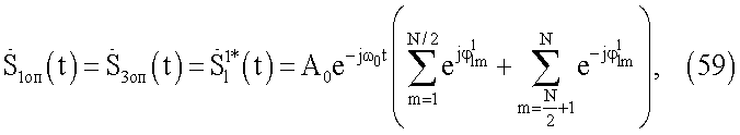 Результатом (58) модулируют копию несущего колебания (1) и формируют два скалярных опорных сигнала для четырех опорных каналов, соответствующих четырем сигнальным каналам: