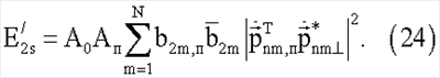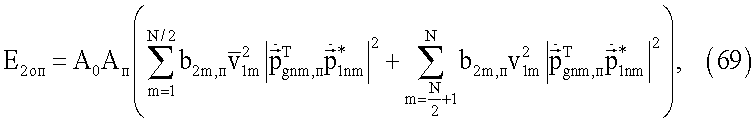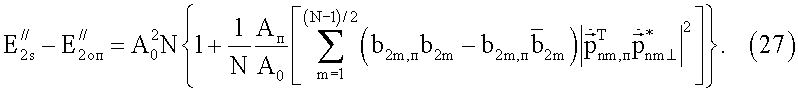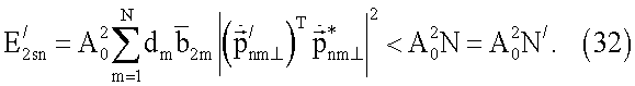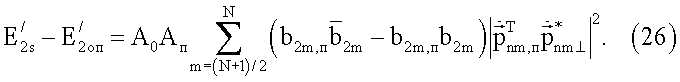 Тогда при тех же значениях поляризационных состояний элементов полезного и опорных сигналов, что и в примере для прототипа при приеме а1n=1 и любых a2n и a3n, в основном сигнальном канале получим