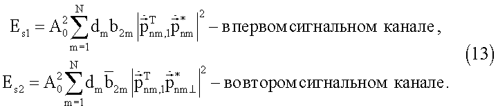 Следовательно, в случае сильных искажений поляризационной структуры полезного сигнала при передаче любой группы информационных символов а1n, a2n, a3n ненулевые значения выходного эффекта возможны в парах взаимно инверсных сигнальных каналов , или , .