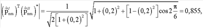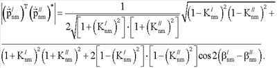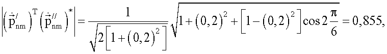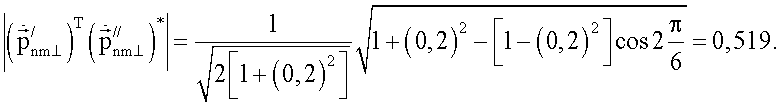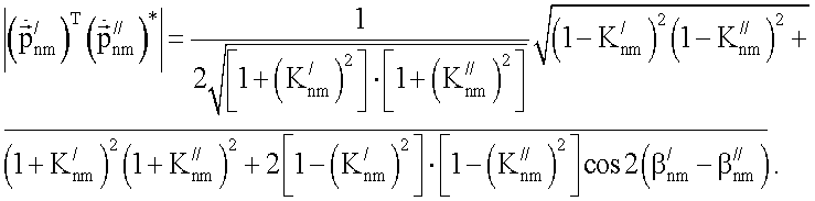Так как соотношение как модуль скалярного произведения двух единичных коллинеарных комплексных векторов, которые характеризуют поляризационную структуру соответствующих элементов полезного и опорного сигналов [Канарейкин Д.Б., Павлов Н.Ф., Потехин В.А. «Поляризация радиолокационных сигналов». – М.: «Сов. радио», 1966 г., стр.23-28], то получают: