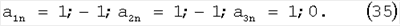 При передаче символов а1n=-1, а2n=-1 и а3n=-1 на выходе четырех сигнальных каналов после операции sign(Eh) получают столбец: