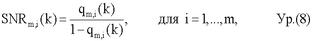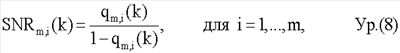 SNRm,j(k) – SNR потока 1 символов данных для поднесущей k.