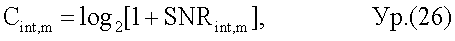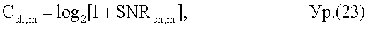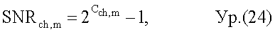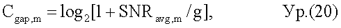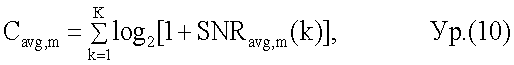 Преобразователь 316 емкости преобразует среднее SNRavg,m(k) для каждой поднесущей k в емкость и дополнительно суммирует емкости всех К поднесущих. Преобразование емкости может выполняться на основе функции емкости без ограничений следующим образом: