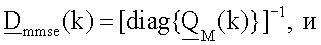 В уравнениях (3) и (5) Dmmse(k) и Dmrc(k) являются диагональными матрицами М×М со значениями масштабного коэффициента, используемыми для получения нормированных оценок символов данных.