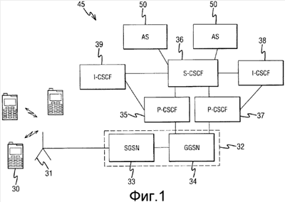 Согласно фиг.1, изображен возможный вариант архитектуры сети, в которой может быть реализовано изобретение. На фиг.1 обеспечена сеть IP-мультимедиа 45 для предложения служб IP-мультимедиа для абонентов сети IP-мультимедиа.