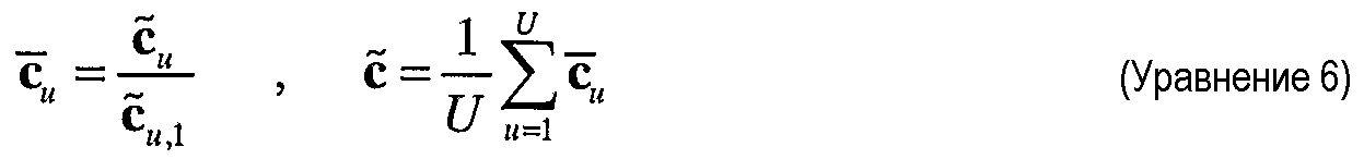 Необходимо отметить, что в некоторых аспектах нормализующим элементом может быть любой элемент вектора калибровки при условии, что он является одинаковым элементом для каждой оценки вектора калибровки, например, первый элемент или другой элемент. Сумма нормализованных элементов затем делится на общее количество элементов U вектора .
