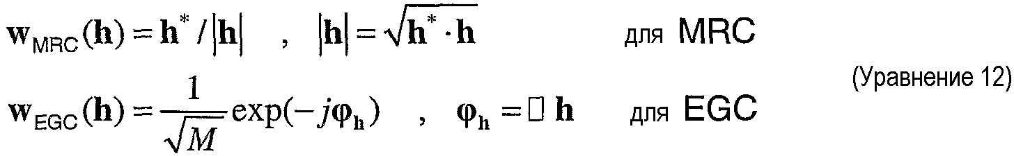 В некоторых аспектах узел доступа может использовать формирование диаграммы направленности посредством суммирования дифференциально взвешенных сигналов (СДВС, MRC), формирование диаграммы направленности посредством линейного суммирования сигналов равной мощности (ССРМ, EGC) или любой другой метод пространственной предварительной обработки для передачи на любой терминал доступа. Т.е. если вектором канала обратной линии связи является h, узел доступа использует следующие весовые коэффициенты предварительной обработки для передачи: