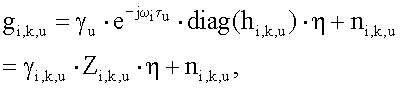 где Zi,k,u представляет собой диагональную матрицу, диагональные элементы которой представляют собой элементы оценки hi,k,u, вектора канала обратной линии связи, и нижние индексы i,k,u представляют собой индексы тона, времени и пользователя, соответственно.