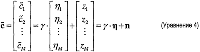Вектор n шума включает в себя влияние ошибок измерения канала (среднеквадратическая ошибка (СКО)) и также влияние декорреляции измерения канала, так как измерения усиления выполняются в различные моменты времени, таким образом позволяя изменениям в канале во времени, а также температурным и другим изменениям оказывать влияние на измерение.