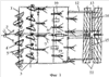 Для устранения недостатков известных комбинированных почвообрабатывающих агрегатов и достижения положительных технико-технологических показателей перед лапами расположены два ряда одиночных дискаторов, первый ряд которых снабжен волнистыми дисками, а второй – зазубренными дисками с величиной зубцов l=d:8, где l – высота зубца, мм; d – диаметр зазубренного диска, мм; 8 – технологический коэффициент, зависящий от режима и физико-механических свойств почвы, а дискаторы выполнены с устройством для регулирования дисков, кроме того стойки трехрядно расположенных лап присоединены к поперечным брусьям рамы шарниров и подпружинены устройством в виде наклонных штанг и пружин, к тому же, позади третьего ряда лап расположены спаренные рабочие органы, вращающиеся от почвы, секции которых соединены горизонтально расположенными вертикального давления пружинами, закрепленными одним концом на поводках рамки и другим на их стойках.