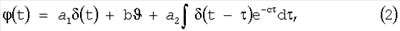 Фиг.2 представляет кривые отклонения и угла поворота колес в функции времени для случая, когда в начальный момент времени t=0 измеренное отклонение (воспринимаемое как отрицательное) равно 0. К началу процесса регулирования интегральный член уравнения еще равен нулю, а первоначально установленный угол 0 поворота колес представляет единственный пропорциональный член уравнения. Первоначально установленный угол 0 поворота колес противодействует отклонению , так что величина пропорционального члена начинает сразу же уменьшаться, однако из-за того, что отклонение продолжает сохраняться, вначале величина интегрального члена возрастает до момента времени t1, когда величина угла поворота колес достигает максимума. К моменту времени t2 отклонение =0, однако поскольку к этому моменту времени интегральный член еще не полностью сошел на нет, в заключение образуется небольшое отклонение в противоположном направлении, то есть отклонение на некоторое время становится положительным до того, как управление выведет его на ноль.