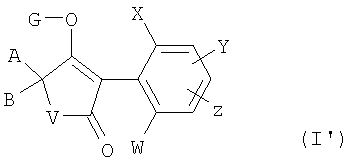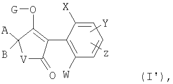 в которой V означает N-D, D означает водород, Х означает алкил, W, Y и Z независимо друг от друга означают водород, галоген или алкил, А и В совместно с атомом углерода, к которому они присоединены, означают насыщенный или ненасыщенный, при необходимости содержащий по меньшей мере один гетероатом, незамещенный или замещенный цикл, G означает водород (а) или группу