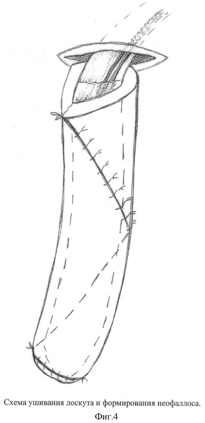 Фиг.4 – схема ушивания лоскута и формирования неофаллоса.