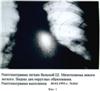 Однако в октябре 1992 г. вновь почувствовала себя хуже, появилась одышка, повысилась температура. Больная была обследована и у нее были выявлены метастазы в левое легкое. Лучевая и химиотерапия больной были не показаны и больная была выписана на амбулаторное лечение.