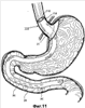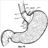 Для введения любого из устройств 15-915 для лечения от ожирения в пациента можно использовать разнообразные системы введения. Подобная система введения может содержать трубчатое устройство (не показанное), в которое вжимают устройство для лечения от ожирения. Трубчатое устройство может представлять собой жесткую или гибкую трубку и может быть выполнено в размер и по форме для удобной вставки в пищевод пациента. Подобная система введения содержит механизм размещения (не показанный) для оттягивания устройства для лечения от ожирения из трубки. По мере того как устройство для лечения от ожирения вытягивают из трубки, оно принимает свою расширенную форму. Если применяется саморасширяющаяся стенка, то устройство для лечения от ожирения будет оказывать радиальное давление на дистальный участок пищевода и/или кардиальное отверстие пациента, при вытягивании из трубки. Если применяется расширяемая стенка, например накачиваемая камера, то накачиваемую камеру накачивают для оказания радиального давления. На стенку устройства для лечения от ожирения можно наносить разнообразные маркеры, например флуоресцирующие маркеры, для допуска поддержки телерентгенологическим контролем при размещении устройства.