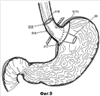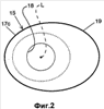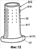 Как можно видеть из фиг.1, стенка 17 является продольно несимметричной относительно центральной продольной оси L, задаваемой направлением движения пищи по пищеводу и желудку пациента. В частности, по мере перемещения вдоль оси L поперечная конфигурация стенки 17 изменяется от проксимального конца к дистальному. Например, участки 17а и 17b стенки являются, в общем, цилиндрическими по форме, и участок 17с стенки является усеченно-коническим по форме, с расширением наружу от дистального конца участка 17b стенки. Участок 17с стенки наклонен для согласования с кардиальной вырезкой. Стенка 17 может быть также радиально несимметричной относительно упомянутой продольной оси L. В частности, некоторые участки стенки 17 находятся на большем радиальном расстоянии от оси L, чем участки стенки в другом месте вокруг оси L. Например, участок 17с стенки увеличен в местах 19 для продолжения по большей площади дна кардиального отверстия, например, его изгибу. Данный увеличенный участок 19 делает стенку 17 радиально несимметричной относительно оси L.