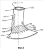 Устройство 115 для лечения от ожирения содержит стенку 117, имеющую проксимальный участок 117а стенки, который прилагает радиальное давление к абдоминальному участку пищевода, дистальный участок 117с, который прилагает радиальное давление к проксимальному кардиальному участку желудка, и средний участок 117b, который расположен на пищеводно-желудочном переходе (фиг.3). Что касается устройства 15 для лечения от ожирения, в устройстве 115 для лечения от ожирения центральный участок 117b изготовлен из нерасширяющегося материала, например мягкого материала 120. Дистальный участок 117с содержит также увеличенный участок 119, который продолжается по большей площади дна кардиального отверстия, например его изгибу. Мягкий материал 120 содержит отверстия 123, которые допускают врастание материала. Отверстия 123 образуют, по меньшей мере, частично, систему 121 фиксации. Система 121 фиксации может содержать вспомогательное или временное средство для фиксации устройства 115 для лечения от ожирения, при одновременном обеспечении возможности врастания ткани сквозь отверстия 123. Подобная вспомогательная система фиксации может содержать швы, скобки или что-то подобное. Отверстия 123 могут быть выполнены в размер, подходящий для вмещения подобных швов или скобок. Шовные нити могут быть рассасывающимися или нерассасывающимися. Отверстий 123 может быть немного, например, всего пять отверстий в участке 120 мягкого материала. В альтернативном варианте, отверстия могут составлять сетку из мелких отверстий, которые обеспечивают возможность врастания ткани. Применение врастания ткани использует реакцию организма на устройство 115 для лечения от ожирения, чтобы способствовать фиксации устройства для воспрепятствования смещению в дистальном направлении. Хотя может наблюдаться некоторое раздражение слизистой оболочки, когда устройство 115 для лечения от ожирения снимают, любое такое раздражение должно быть сравнительно слабым и легко заживляющимся. Как и все системы фиксации, описанные в настоящем документе, систему 121 фиксации можно применять в сочетании с другими системами фиксации, например системой 21 фиксации или подобной ей.