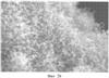Активированные углеродные частицы с выращенными на поверхности нановолокнами имеют более высокую эффективность захвата загрязнений, чем активированные углеродные частицы без нановолокон. Микрофотография активированной углеродной частицы без нановолокон, полученная на сканирующем электронном микроскопе (SEM), представлена на фиг.1, а SEM-микрофотографии активированных углеродных частиц с выращенными на поверхности нановолокнами показаны на фиг.2а и 2b. В одном из многих предполагаемых вариантов осуществления фильтрации большое число выращенных на поверхности нановолокон может обеспечить больше центров адсорбции и большое количество центров исключения по размеру для различных загрязняющих веществ. Во время действия фильтра 20 водяной поток проходит через впускное отверстие 24 к выпускному отверстию 26 фильтра 20. В то время как водяной поток проходит через фильтрующий материал 28, загрязняющие вещества удаляются для вывода питьевой воды через выпускное отверстие 26 фильтра 20. В одном варианте осуществления это удаление загрязняющих веществ может быть результатом адсорбции загрязняющих веществ центрами адсорбции фильтрующих частиц.