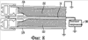Фиг.8 – сечение фильтрующего материала, содержащего слой смешанного волокна, имеющий волокна материалов с разных концов трибоэлектрического ряда, согласно настоящему изобретению.