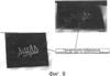 фиг.6 – черно-белая фотография изображения, согласно данному изобретению, при этом изображение имеет два символа, способных изменять цвет из золотого в зеленый, показанные вблизи темного фона из стоящих чешуек, расположенных на белом фоне;