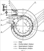 Поворотные лопасти 3 воздухораспределительной решетки 2 имеют каплеобразную форму в поперечном сечении, причем широкая часть лопасти повернута к спиральной стенке корпуса 1, а заостренная часть – вовнутрь кольцевого пространства 9 между воздухораспределительной 2 решеткой и рабочим колесом 4.