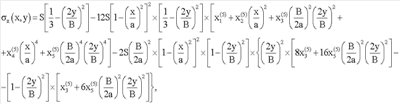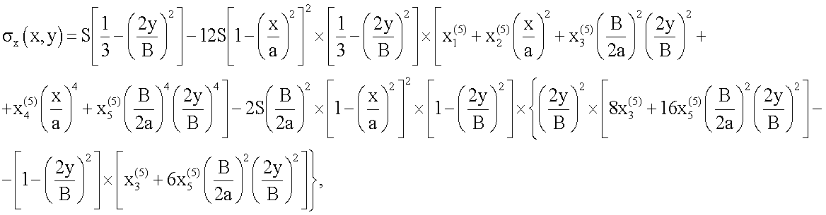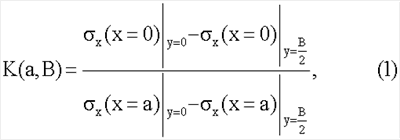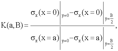 Известно, что по принципу Сен-Венана неравномерность приложенных к полосе напряжений уменьшается с увеличением расстояния от места приложения. Следовательно, для того чтобы к очагу деформации была приложена неравномерная эпюра напряжений с амплитудой на расстоянии а от него (фиг.1) необходимо создать эпюру напряжений с амплитудой, равной где K=K(а, В) – коэффициент ослабления, зависящий от расстояния до очага деформации а и ширины полосы В (фиг.2,а и б, кривые 2).