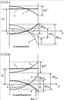 На схеме (фиг.1) показан принцип регулирования плоскостности по предлагаемому способу. Допустим, что полоса (1) на выходе клети (2) (фиг.1) имеет неравномерную эпюру продольных напряжений с амплитудой  *, способствующую краевой волнистости (фиг.2,а, кривая 1). Форма эпюры и уровень переднего натяжения 1 измеряется стрессометрическим роликом (6).