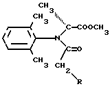 Далее, R-энантиомеры активных ингредиентов могут также быть получены активацией гидроксильной группы как уходящей группы в доступной из природных источников L(+)-молочной кислоте, ее эфирах или солях, и ее замещением 2,6-диметиланилином с обращением конфигурации. Использование кислоты или ее солей делает необходимым последующую этерификацию метанолом. Использование отличных от метиловых лактатных эфиров делает необходимым последующую переэтерификацию метанолом. Температура кипения чистого R-металаксила составляет 143-145oC/0,03 мбар.