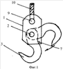 Зацепив крюком 3 за поднимаемый груз, стропальщик дает команду крановщику на подъем и крановщик приподнимает груз, подтягивая стропу 10. Теперь весь вес приходится на крюк 3, и стропальщик извлекает фиксатор 8 из отверстия 7.