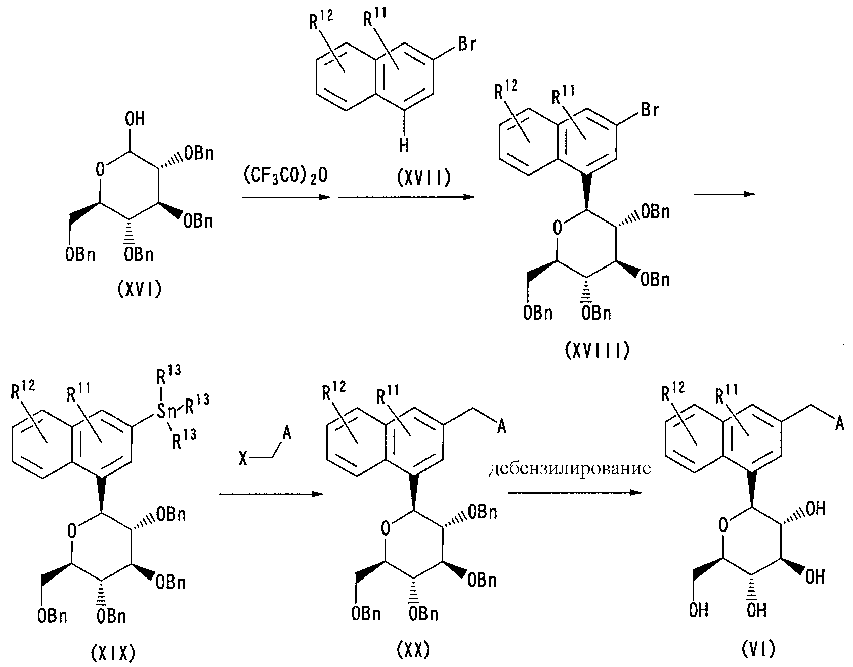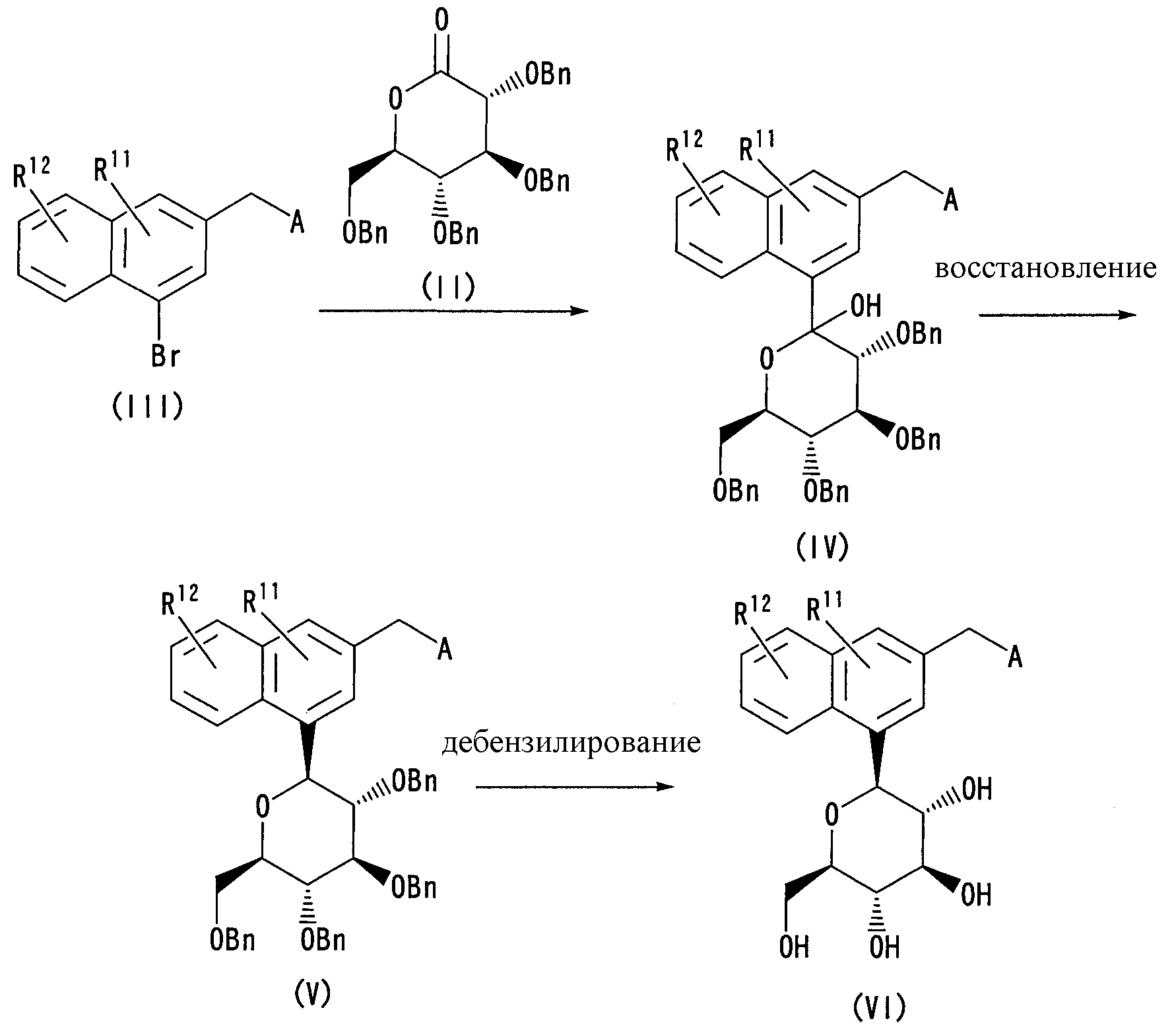 (6) Синтез (2R,3S,4R,5R)-3,4,5-трисбензилокси-2-бензилоксиметил-6-[3-(5-метоксибензо[b]тиофен-2-илметил)нафталин-1-ил]тетрагидропирана