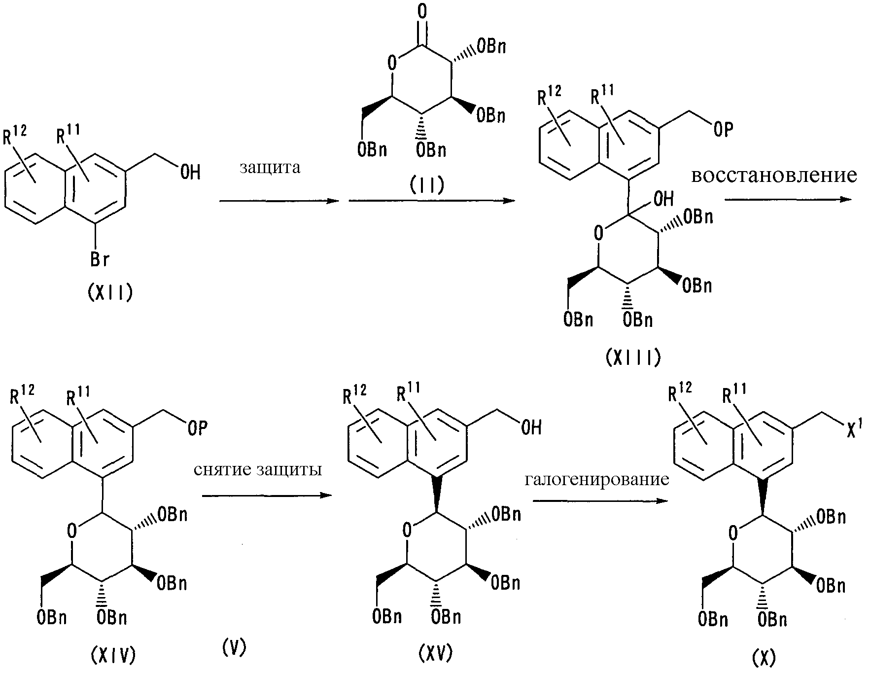 (6) Синтез (3R,4R,5S,6R)-3,4,5-трисбензилокси-2-бензилоксиметил-6-[3-(5-этилбензо[b]тиофен-2-илметил)нафталин-1-ил]тетрагидропирана