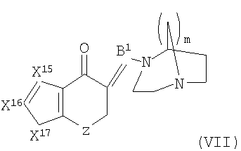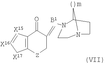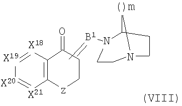 где Х1 означает СН; Х2-X5 означают каждый независимо СН или С-, где -С представляет место присоединения группы В и где один из Х2-Х5 означает -С; X7-X10 означают каждый независимо СН или CR2; Х18-X21 означают каждый независимо СН или CR5; Х22 и Х23 означают каждый независимо СН или CR12, где по меньшей мере один из Х22 или Х23 означает CR12; Х24 означает СН; В означает СН2 или С=O; В1 означает СН; Y означает кислород или серу; Z означает О; m означает 2; R означает водород; R2 и R5 означают каждый независимо (С1-С6)алкил, (С3-С8)циклоалкил, галоген, имидазолил, замещенный (С1-С6)алкилом и/или группой оксо, или OR9; R9 означает водород, (С1-С6)алкил, который является незамещенным или замещенным один или несколько раз фтором, или (С4-С8)циклоалкилалкил; R12 означает (С1-С6)алкоксигруппу, которая является замещенной один или несколько раз фтором, незамещенный тиазолил, тиазолил, замещенный (С1-С6)алкилом, незамещенный оксазолил, дигидропиранил, тетрагидропиранил или тетрагидропиранилокси, и его фармацевтически приемлемые соли, а также описываются фармацевтические композиции, содержащие эти соединения. Данное изобретение относится к области лигандов никотиновых ацетилхолиновых рецепторов (nAChR), активации nAChRs и лечению заболеваний, ассоциированных с дефектным или со сбоями функционированием никотиновых ацетилхолиновых рецепторов, особенно в мозге. 21 н. и 48 з.п. ф-лы.