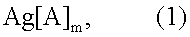 3. Комплекс серебра по п.1, в котором соединение серебра, представленное формулой 2, представляет собой по меньшей мере одно соединение, выбранное из оксида серебра, цианида серебра, карбоната серебра, нитрата серебра, нитрита серебра и сульфата серебра.