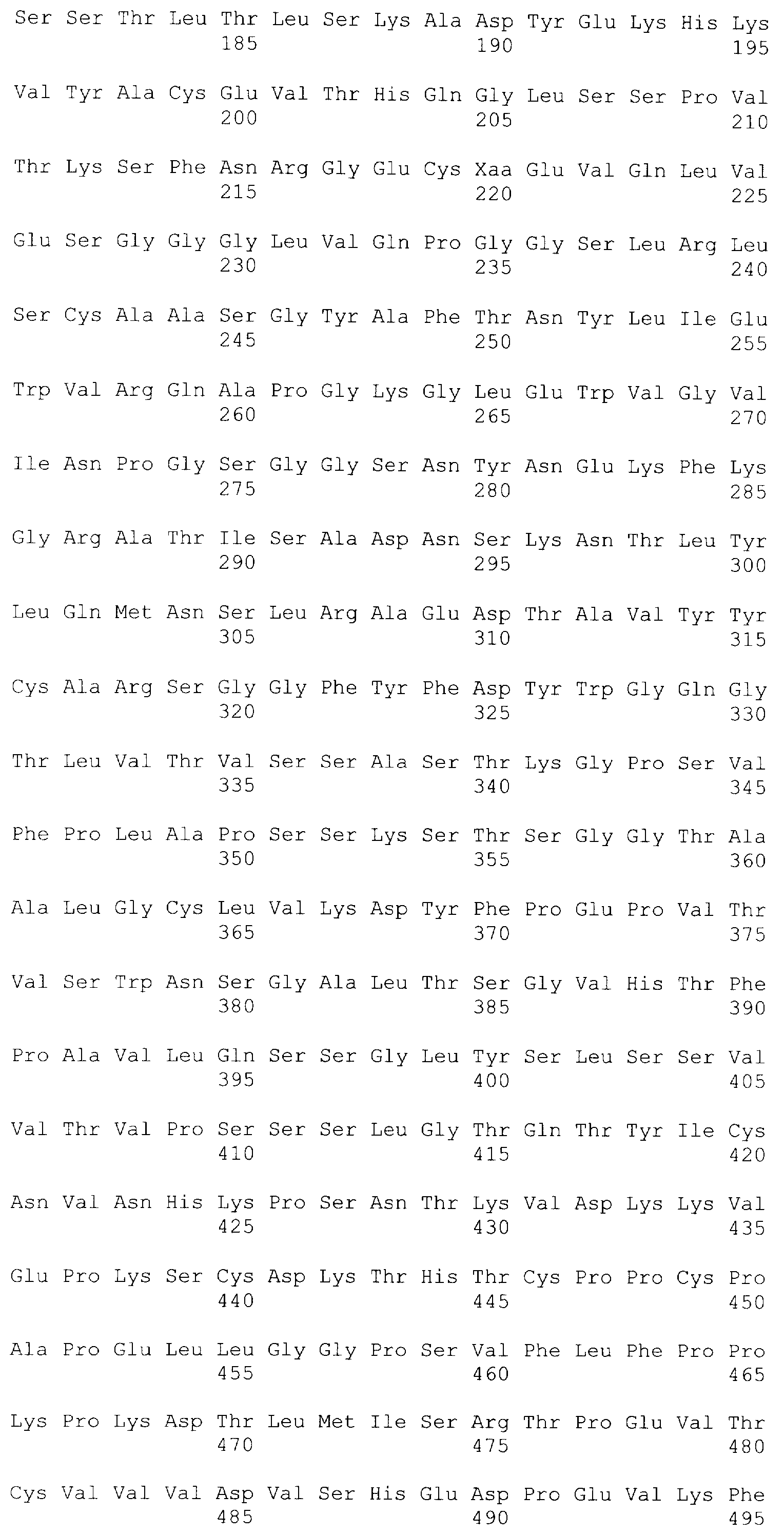 1. Гуманизированное антитело, которое связывается с TGF-бета, содержащее вариабельный домен тяжелой цепи (Vн), который содержит не относящиеся к человеческим остатки гипервариабельной области GYAFTNYLIE (SEQ ID NO: 21), VINPGSGGSNYNEKFKG (SEQ ID NO: 43) или VNNPGSGGSNYNEKFKG (SEQ ID NO: 22) и SGGFYFDY (SEQ ID NO: 23), включенные в человеческий домен Vн, где указанный вариабельный домен включает каркасный участок (FR), содержащий остатки каркасной области SEQ ID NO: 6 и содержащий одну или несколько замен в SEQ ID NO: 6 в положении, выбранном из группы, состоящей из 48, 49, 68, 70, 72, 74 и 79.