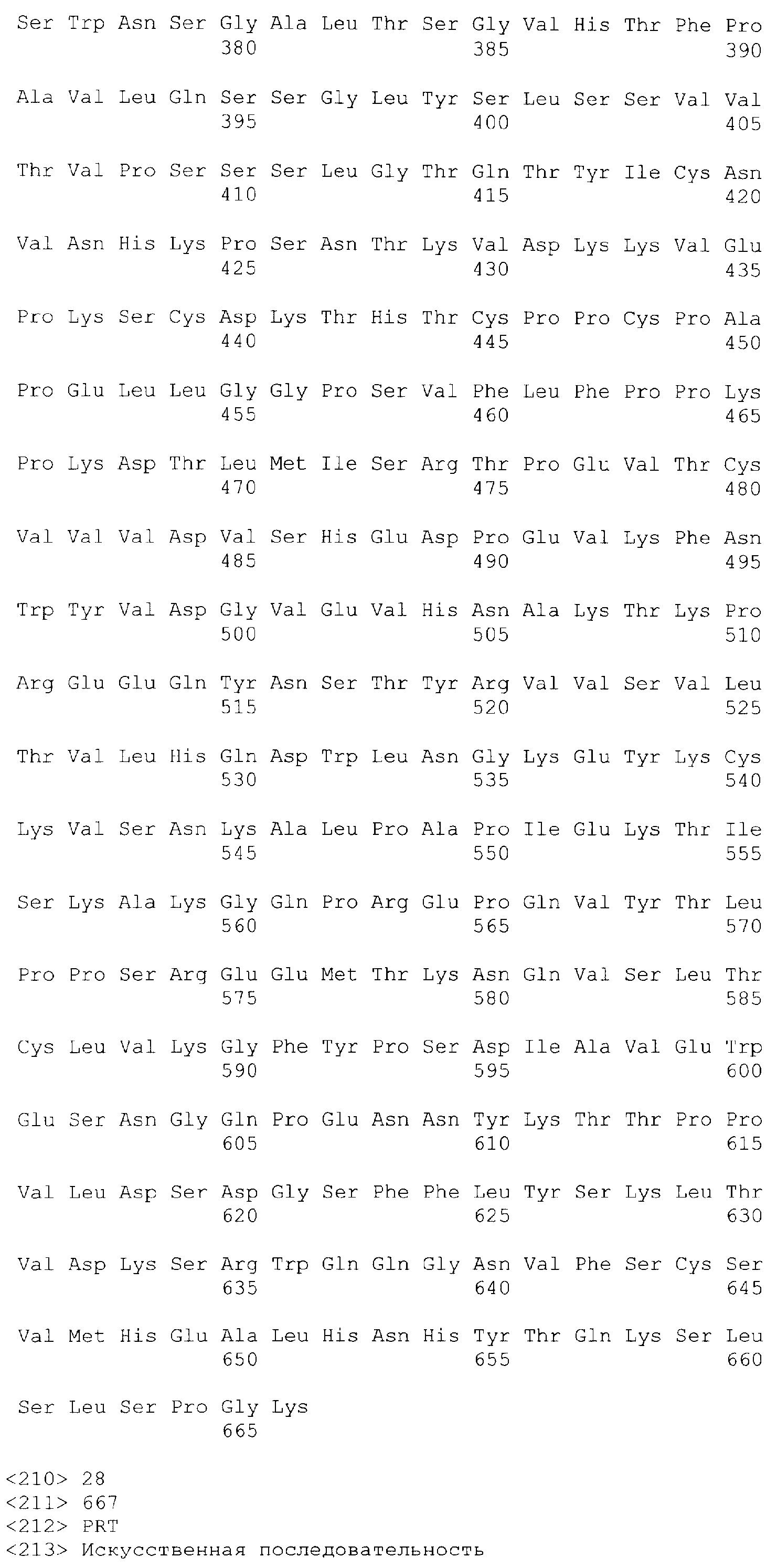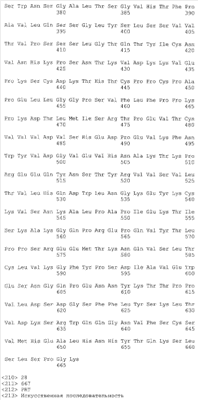 Способы получения химерных и гуманизированных антител описаны в и других источниках в данной области, включая, например, патент США 6235883 по полным моноклональным антителам против рецептора человеческого эпидермального фактора роста; ЕР 184187 по мышиному-человеческому химерному антителу; ЕР 844306 по способу получения рекомбинантных антител с использованием фаговой технологии; патент США 5859205 по получению CDR-трансплантированных антител, предпочтительно гуманизированных антител, содержащих не относящийся к человеческому донорный и человеческий акцепторные или каркасные участки, ЕР 120694; ЕР 125023; ЕР 171496; ЕР 173494; ЕР 239400; WO 1989/07452; WO 1990/07861 и WO 1986/01533 по способам получения гуманизированных антител; заявка на патент США 2003/0039649 по супергуманизированным антителам; заявка на патент США 2003/0039645 по гуманизированным антителам со специфичностью к человеческому TNF-альфа; ЕР 239400 по рекомбинантным антителам и их получению; WO 1991/09967 по гуманизированным антителам; WO 1992/01047 по получению антител; WO 1992/22653 по способам получения гуманизированных антител; WO 1993/11161 по поливалентным антигенсвязывающим белкам; WO 1994/13804 по поливалентным антигенсвязывающим белкам; WO 2000/66631 по членам со специфическим связыванием для ТФР-бета; и Henry «Special Delivery: Alternative methods for delivering drugs improve performance, convenience and patient compliance». C&EN, p. 49-65 (2000). Смотри также патенты США 6140471 и 5969108, и 5872215, и 5871907, и 5858657, и 5837242, и 5733743; ЕР 1024191; ЕР 774511; WO 1997/13844; ЕР 656941 и 605522, и WO 1994/13804; ЕР 589877; ЕР 585287; WO 1993/19172; ЕР 540586; WO 1993/06213; WO 1992/20791; WO 1992/01787 и WO 1992/01047. Кроме того, в WO 2004/065417 раскрываются различные изменения в антителах и антигенсвязывающих фрагментах для повышения выхода. Также смотри патент США 20050049403.