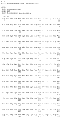 В настоящее время идентифицировано, по меньшей мере, пять форм ТФР-бета, ТФР-бета1, ТФР-бета2, ТФР-бета3, ТФР-бета4 и ТФР-бета5. Известны подходящие способы для очистки данного семейства ТФР-бета от различных видов, таких как человек, мышь, зеленая мартышка, свинья, крупный рогатый скот, курица и лягушка, и из различных источников организма, таких как кость, тромбоциты или плацента, для получения его в рекомбинантной клеточной культуре и для определения его активности. Смотри, например, Derynck et al., Nature, 316: 701-705 (1985); публикации Европейского патента 200341, опубликованная 10 декабря 1986, 169016, опубликованная 22 января 1986, 268561, опубликованная 25 мая 1988, и 267463, опубликованная 18 мая 1988; патент США 4774322; Cheifetz et al., 48: 409-415 (1987); Jakowlew et al., Molecular Endocrin., 2: 747-755 (1988); Dijke et al., Proc. Natl. Acad. Sci. (U.S.A.), 85: 4715-4719 (1988); Derynck et al., J. Biol. Chem., 261: 4377-4379 (1986); Sharples et al., DNA, 6: 239-244 (1987); Derynck et al., Nucl. Acids Res., 15: 3188-3189 (1987); Derynck et al., Nucl. Acids Res., 15: 3187 (1987); Derynck et al., EMBO J., 7: 3737-3743 (1988)); Seyedin et al., J. Biol. Chem., 261: 5693-5695 (1986); Madisen et al., DNA, 7: 1-8 (1988) и Hanks et al., Proc. Natl. Acad. Sci. (U.S.A.), 85: 79-82 (1988), полное содержание которых включено здесь в краткой форме для сведения.