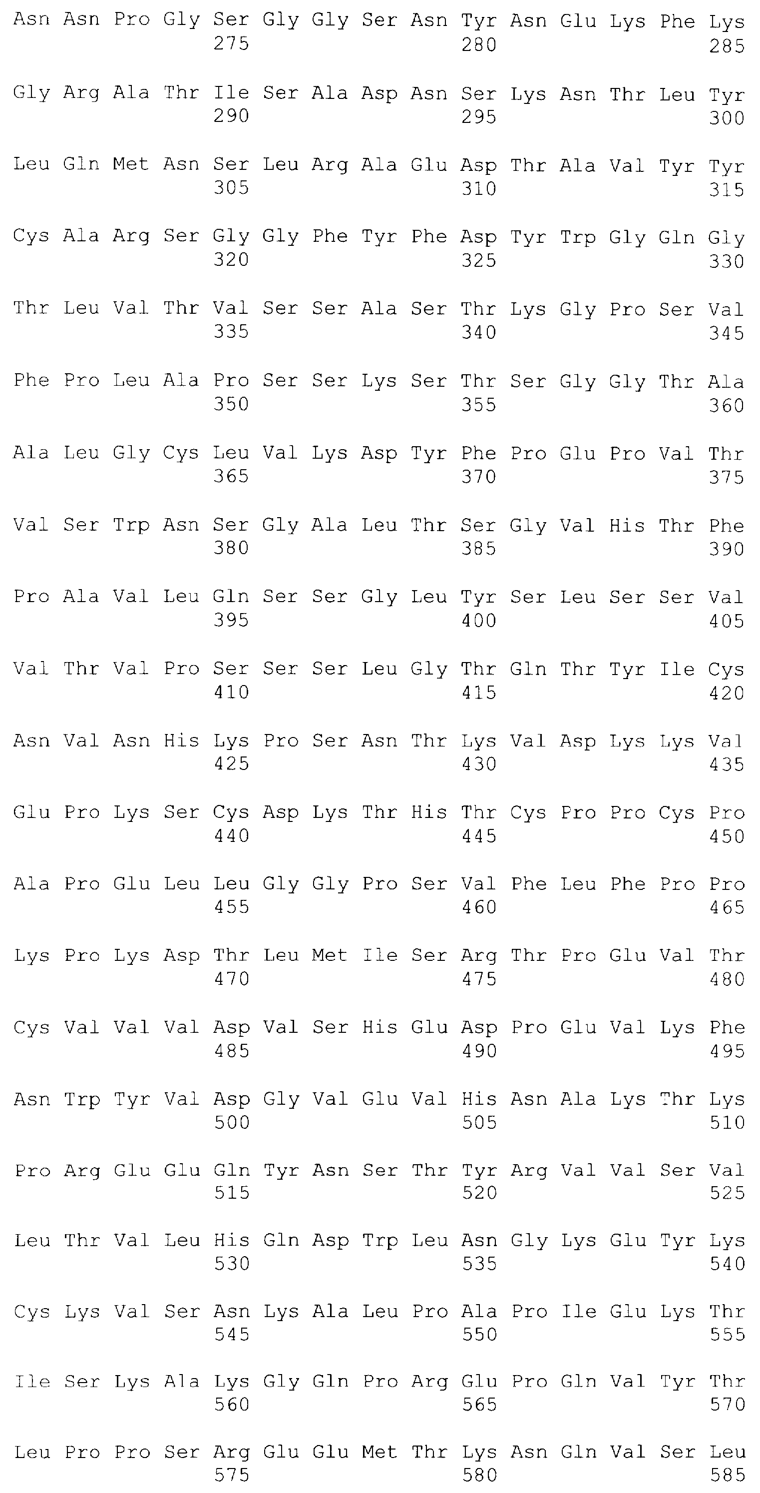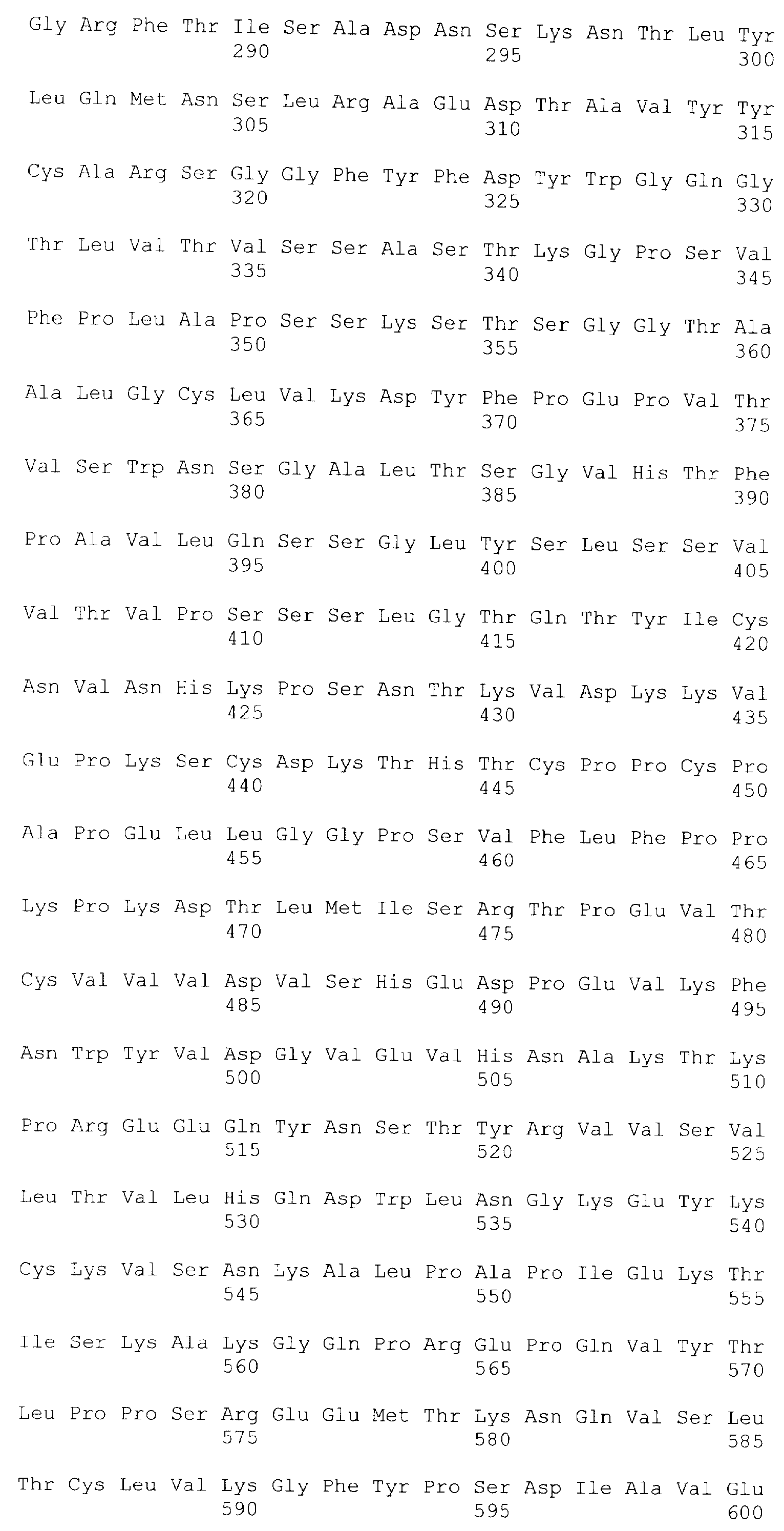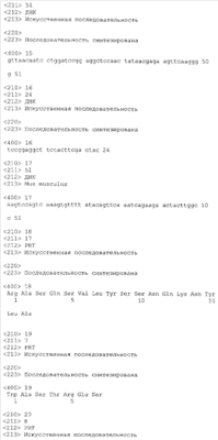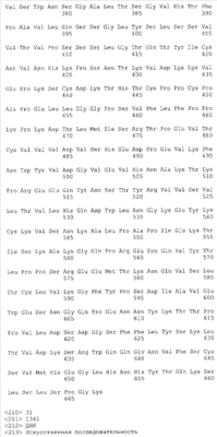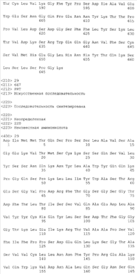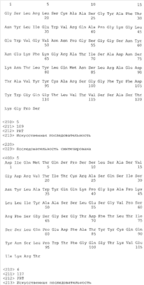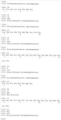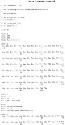 Пептиды, представляющие частичные или полные последовательности ТФР-бета, также использовали в качестве иммуногенов для получения нейтрализующей поликлональной антисыворотки у кроликов. Ellingsworth et al., J. Biol. Chem., 261: 12362 (1986); Ellingsworth et al., Cell Immunol., 114: 41 (1988); Border et al., Nature, 346: 371-374 (1990); Flanders, Biochemistry 27: 739-746 (1988); Flanders et al., Growth Factors, 3: 45-52 (1990); Flanders et al., Development, 113: 183-191 (1991). Кроме того, имеются ограниченные сообщения о выделении мышиных моноклональных антител против ТФР-бета. После иммунизации бычьим ТФР-бета2 (идентичным человеческому ТФР-бета2) выделяли три не-нейтрализующих моноклональных антитела, которые были специфичными для ТФР-бета2 и одно нейтрализующее антитело, специфичное для ТФР-бета1 и ТФР-бета2. Dasch et al., J. Immunol., 142: 1536-1541 (1989). В другом сообщении после иммунизации человеческим ТФР-бета1 выделяли нейтрализующие антитела, специфичные либо для ТФР-бета1, либо перекрестно реагирующие с ТФР-бета1, ТФР-бета2 и ТФР-бета3. Lucas et al., J. Immunol., 145: 1415-1422 (1990). Было показано, что поликлональная антисыворотка к человеческому и свиному ТФР-бета (Keski-Oja et al., Cancer Res., 47: 6451-6458 (1987)) и к свиному ТФР-бета2 (Rosa et al., Science, 239: 783-785 (1988)) нейтрализует биологическую активность соответственно ТФР-бета1 и ТФР-бета2. Кроличья анти-ТФР-бета сыворотка описана Roberts et al., Proc. Natl. Acad. Sci. USA, 83: 4167-4171 (1986). Кроме того, были получены RIA против ТФР-бета1 с использованием кроличьей антисыворотки для количественного определения высвобожденного белка во время агрегации тромбоцитов. Assoian and Sporn, J. Cell Biol., 102: 12178-1223 (1986).