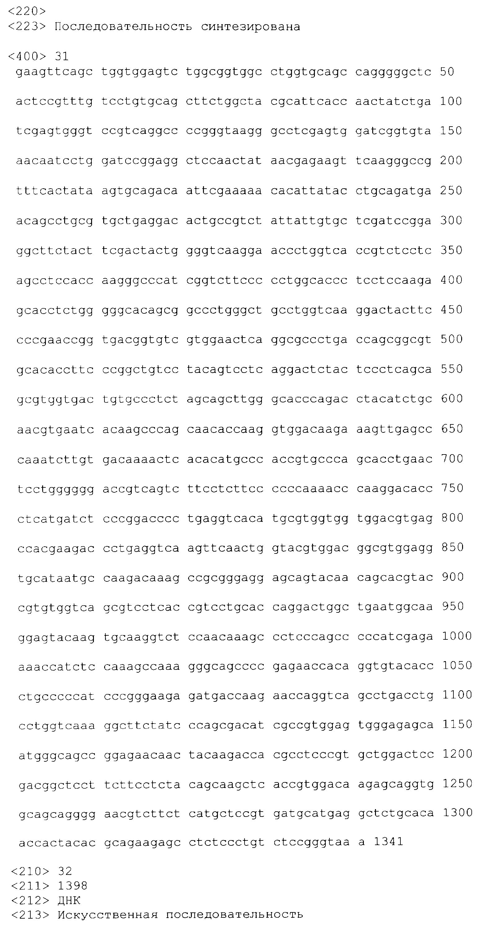 32. Способ по любому из пп.29-31, в котором перед культивированием клетку-хозяина котрансфицируют с вектором, содержащим нуклеиновую кислоту, кодирующую вариабельный домен тяжелой цепи, и с вектором, содержащим нуклеиновую кислоту, кодирующую вариабельный домен легкой цепи.